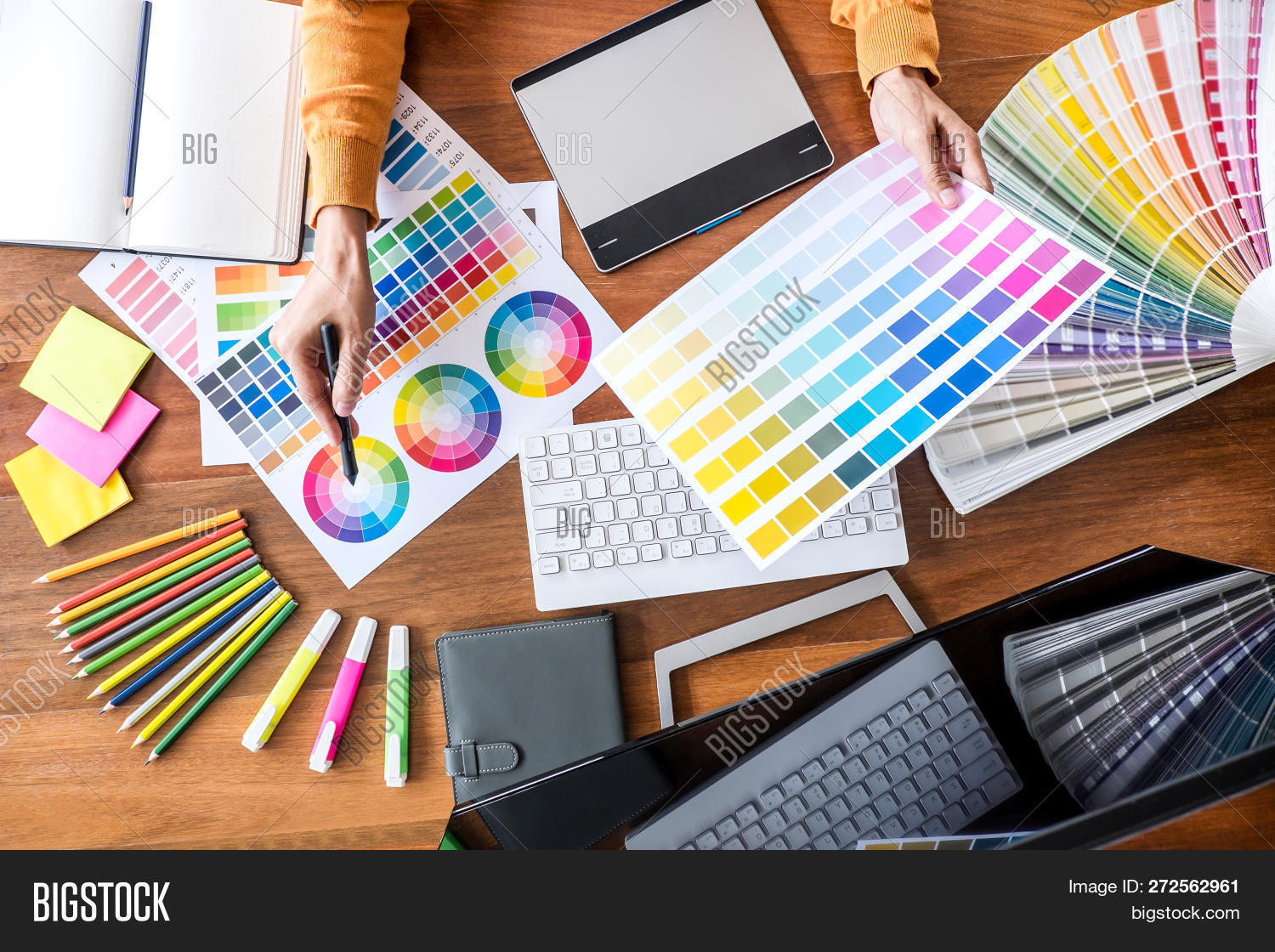 Two Colleague Creative Graphic Designer Working Color Selection Creative Graphic Design Workspace