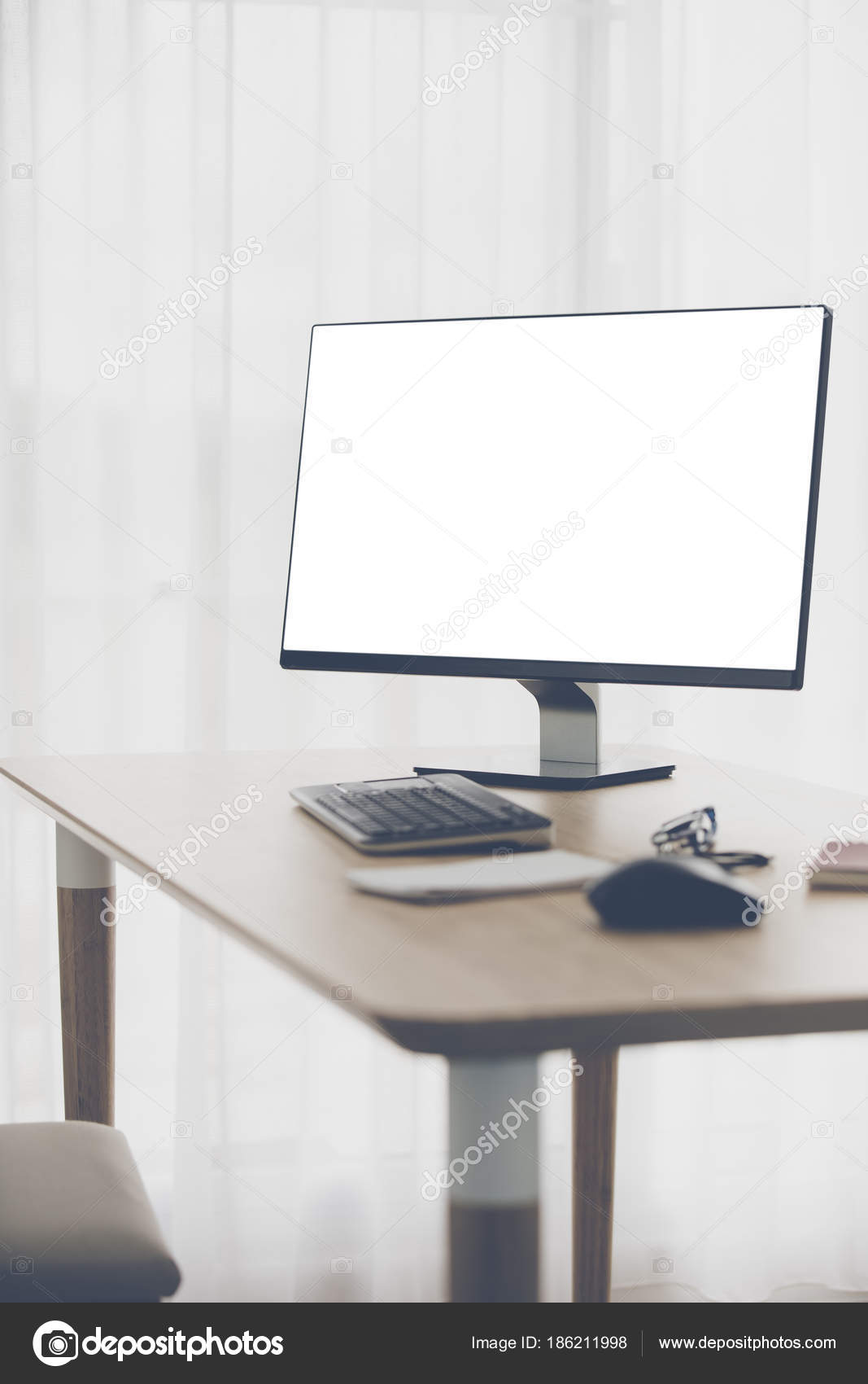 Workspace Background With Desktop Pc And Office Accessories Office Workspace Background