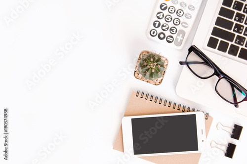Flat Lay Style Workspace Desk On Modern Colorful Background A Workspace Office Desk Stock Photo